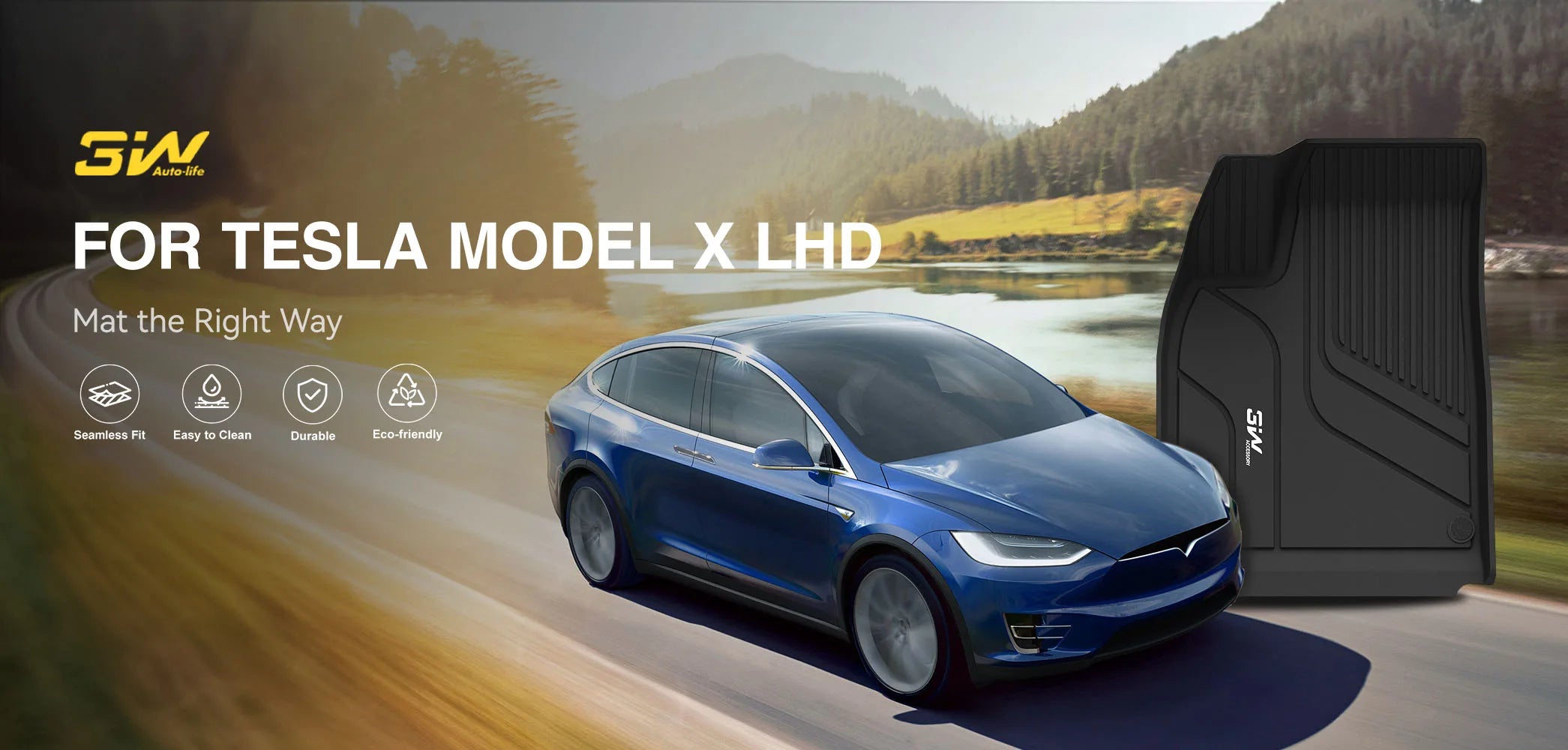 3W Custom All Weather Car Mats for Tesla Model X 6 Seat 2022-2024 LHD