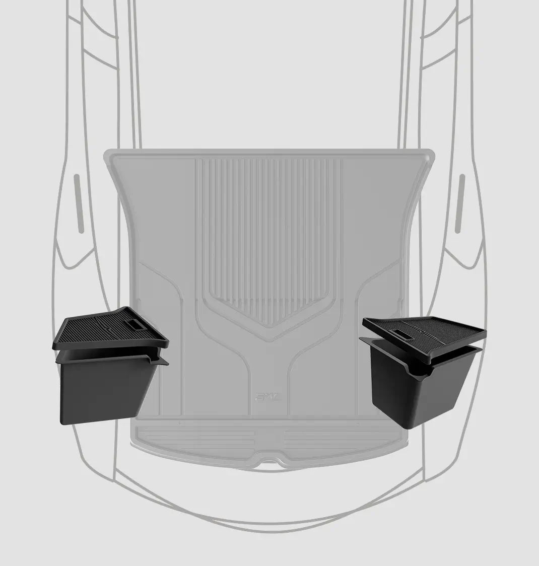 Precision-engineered using detailed 3D scans of the Tesla Model Y's trunk side storage space. Each unit is custom-made to ensure a perfect fit, offering effective protection and enhanced privacy with an added lid.