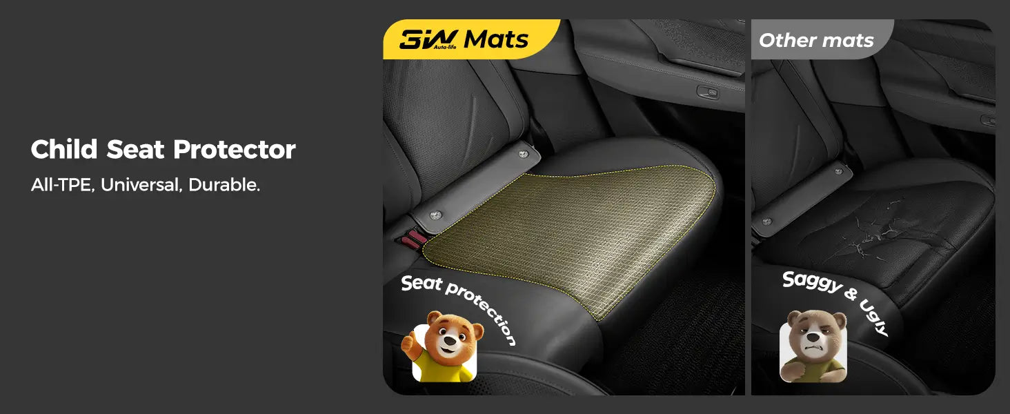 Keep your car’s interior as pristine as the day you bought it — even with a little one on board. 3W Child Seat Protection Mats are designed with the same premium TPE material and 3D precision fit as our car floor mats, delivering complete protection against spills, scuffs, and seat pressure marks.