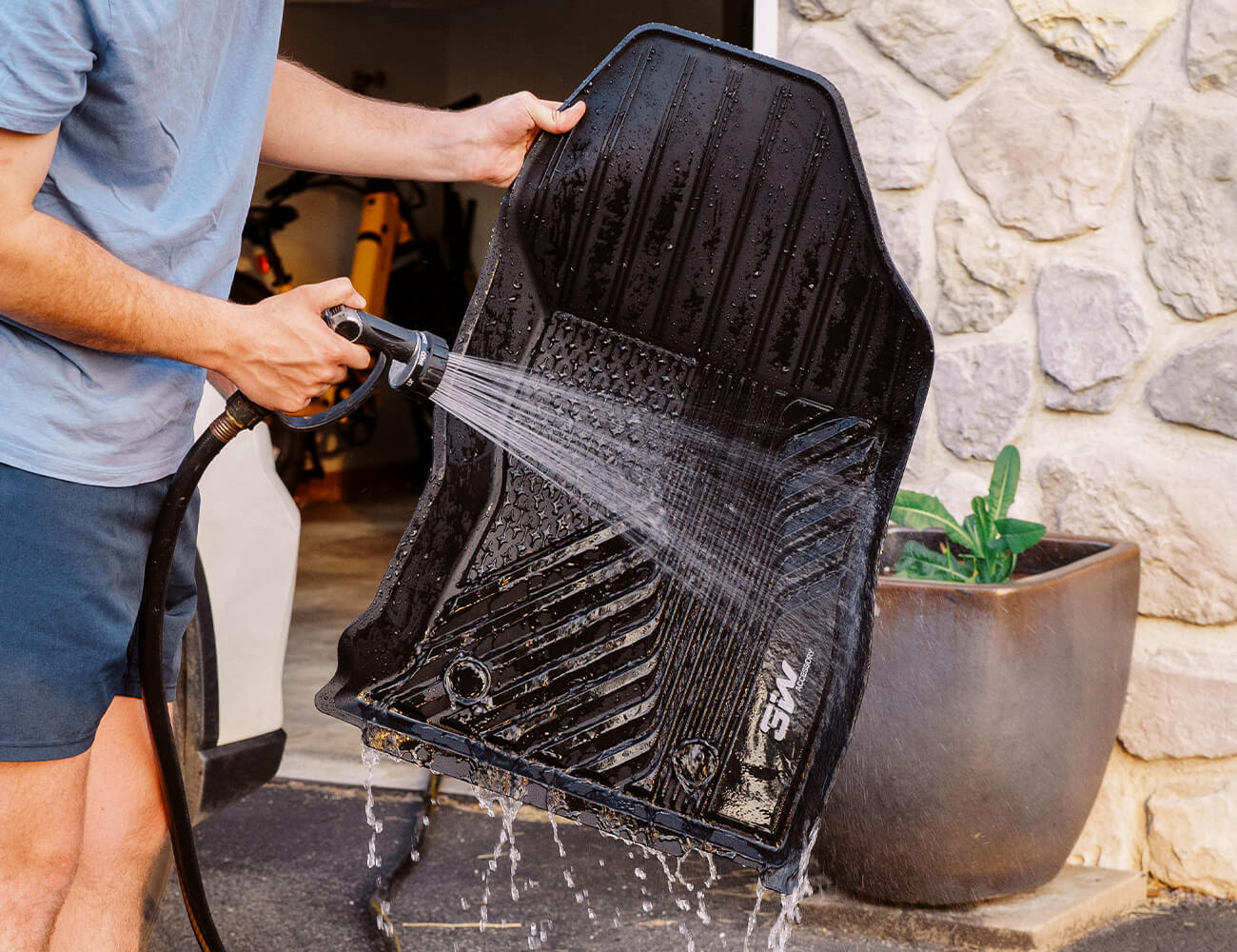 3W car floor mats are easy to clean. Simply remove the mats from your vehicle and rinse them with water. For tougher stains, a damp cloth or mild soap can be used. The mats dry quickly and will look as good as new.