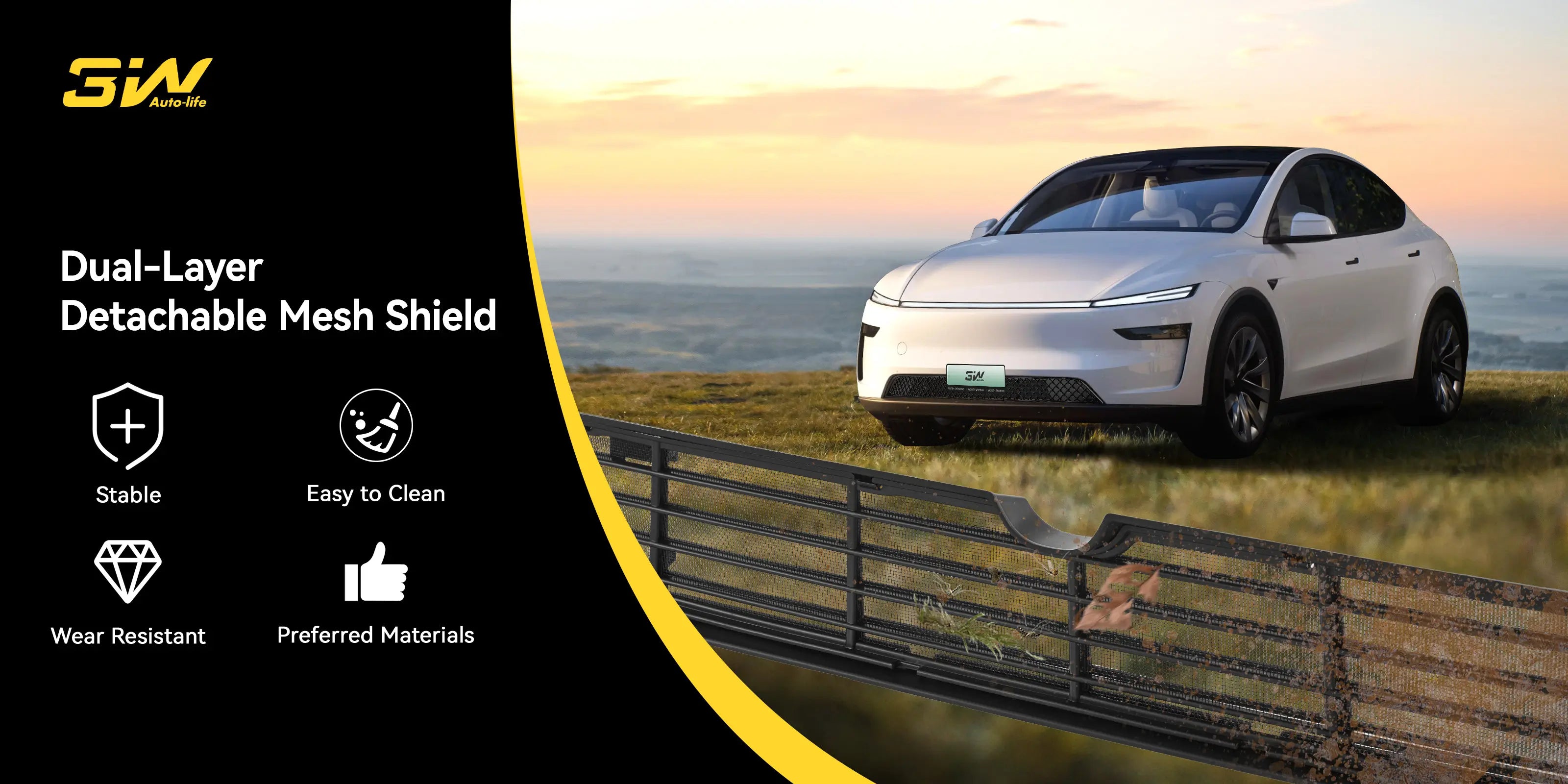 Protect your Tesla Model Y Juniper from insects, leaves and road debris with a custom-fitted mesh grill designed using 1:1 original vehicle data. This upgraded stainless-steel protection system keeps your condenser clean, prevents performance loss and extends the life of key cooling components—all without altering or damaging your vehicle.