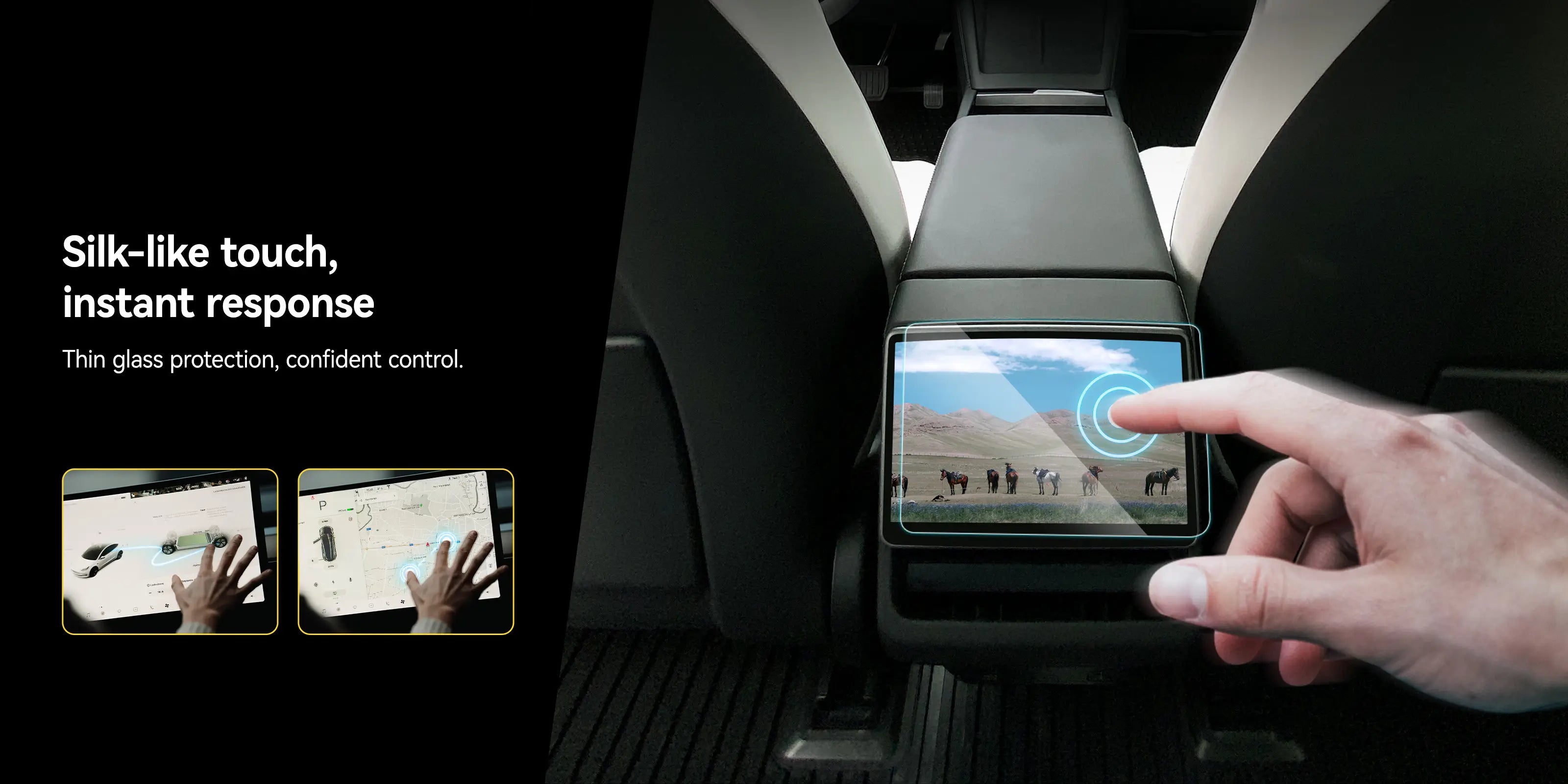 The ultra-thin glass is engineered to maintain the original feel of Tesla’s touchscreen.