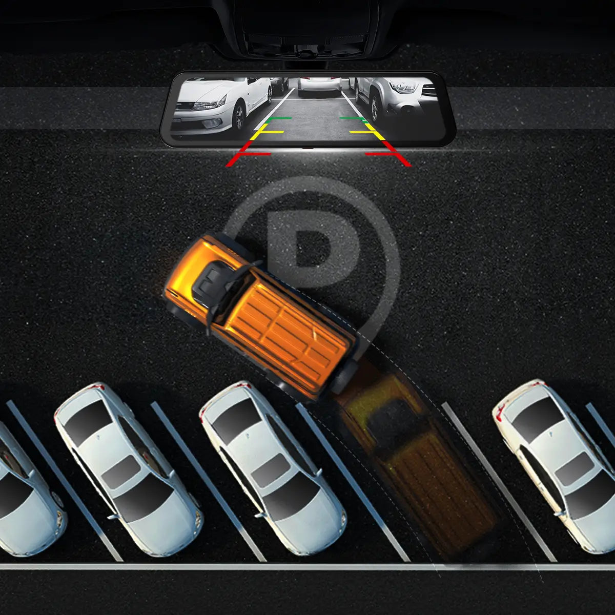 Switch between front, rear, or split-screen view for complete coverage. See what’s ahead and behind you, all at once.G-Sensor & Parking Mode – 24/7 Protection