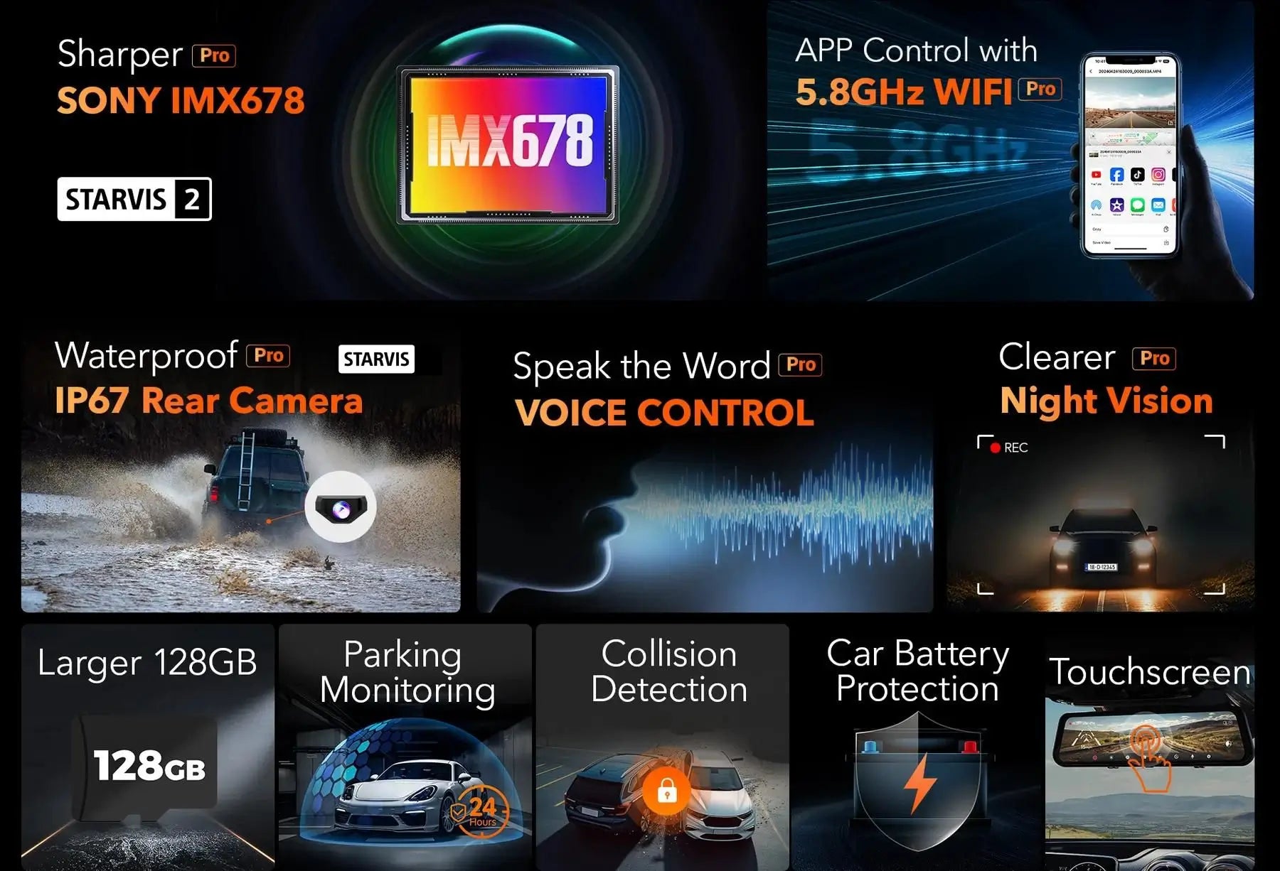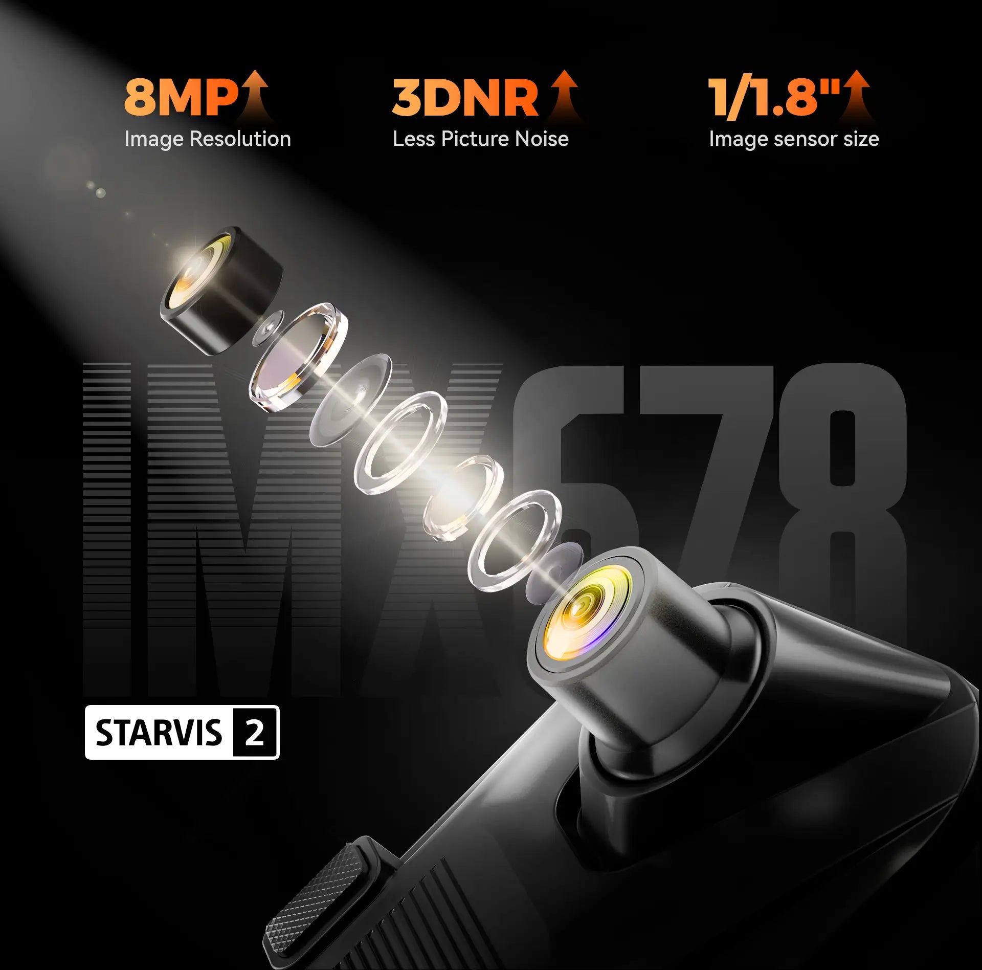 Capture every moment in stunning 4K-like clarity with the high-performance IMX678 sensor. Crystal-clear footage from both front and rear cameras, even in bright daylight.1/1.8'' Enhanced Low-Light Sensor – See Clearly at Night